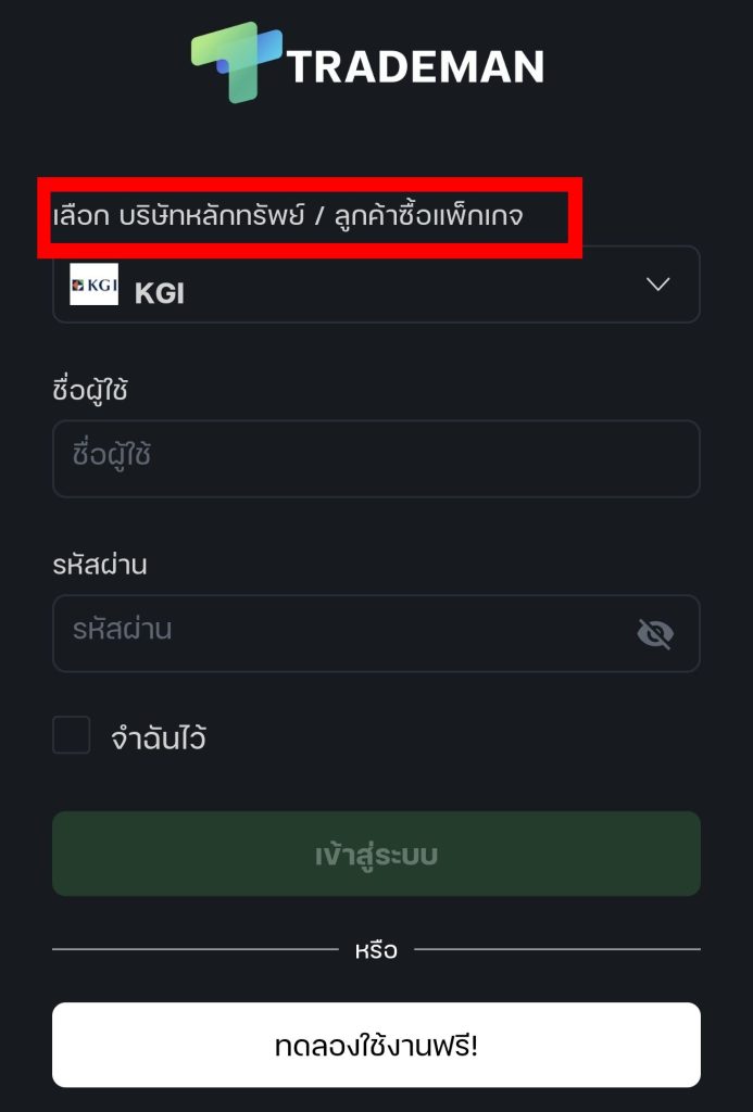 วิธีที่ 2 สำหรับลูกค้าที่ใช้งาน Trademan ผ่านโบรกเกอร์