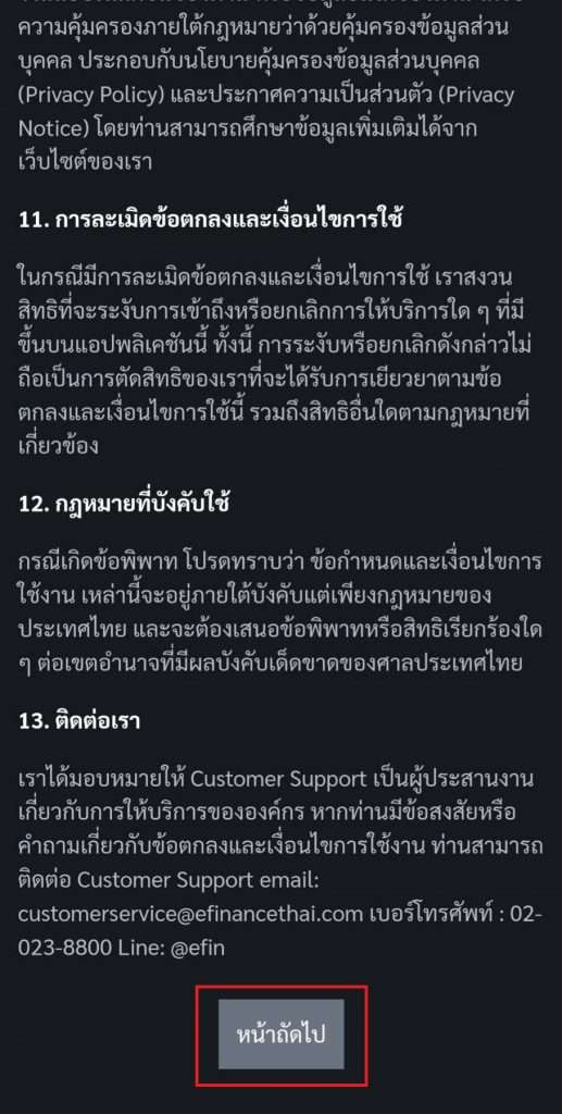 กดเครื่องหมายถูกในช่องเพื่อยอมรับข้อตกลงและกดปุ่ม “ตกลง”