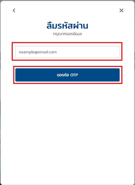 2. กรอกอีเมลที่ใช้งาน และกดปุ่ม “ขอรหัส OTP” จากนั้นรหัส OTP จะถูกส่งไปในอีเมลที่ลงทะเบียนไว้