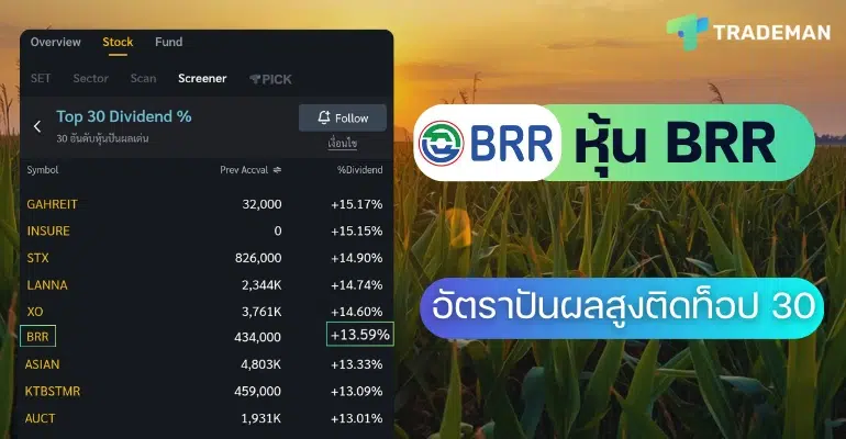 ตัวอย่างผลของฟังก์ชัน Screener เงื่อนไข Top 30 Dividend % ข้อมูล ณ วัน…
