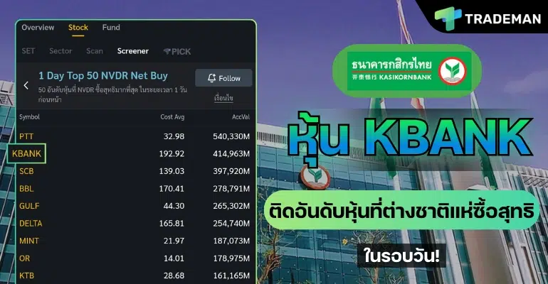 ตัวอย่างผลของฟังก์ชัน Screener เงื่อนไข 1 Day Top 50 NVDR Net Buy ข้อม…