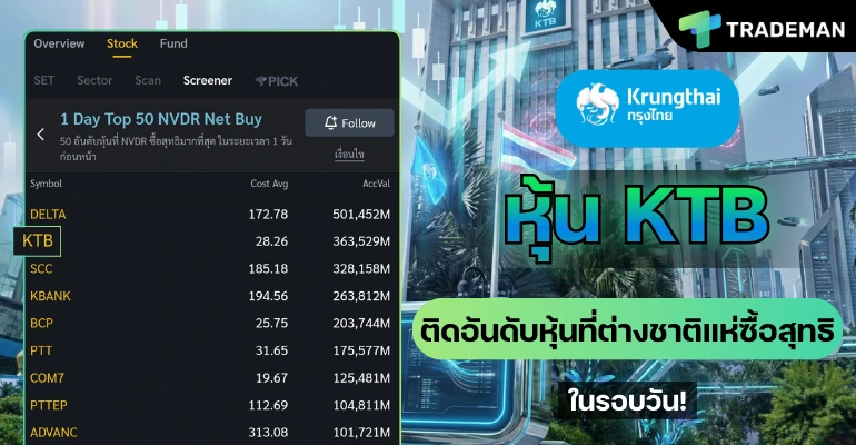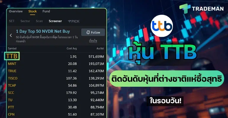 ตัวอย่างผลของฟังก์ชัน Screener เงื่อนไข 1 Day Top 50 NVDR Net Buy ข้อม…
