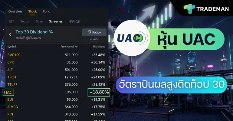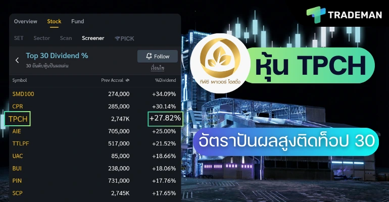 ตัวอย่างผลของฟังก์ชัน Screener เงื่อนไข Top 30 Dividend % ข้…