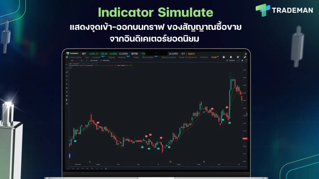 โปรแกรมวิเคราะห์หุ้น Trademan ให้คุณเห็น สัญญาณซื้อขายจากอินดิเคเตอร์ยอดนิยม เช่น MACD, RSI, EMA, Parabolic SAR ฯลฯ และแสดงจุดเข้า-ออกบนกราฟให้ชัดเจนทันที เหมาะสำหรับเทรดเดอร์ที่อยากได้ความแม่นยำโดยไม่ต้องตีความตัวเลขเอง