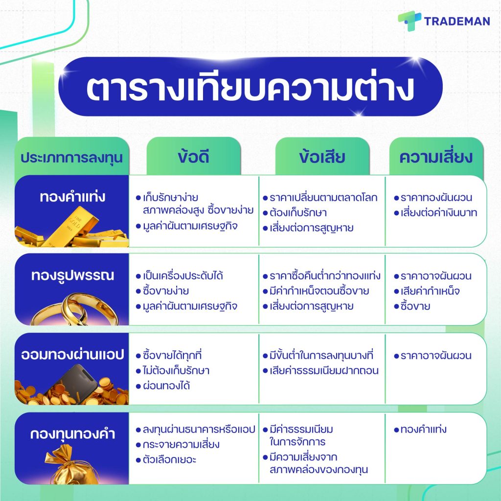 นี่เป็นตารางเทียบความต่างของของคำแบบต่างๆ กับกองทุนทองคำ