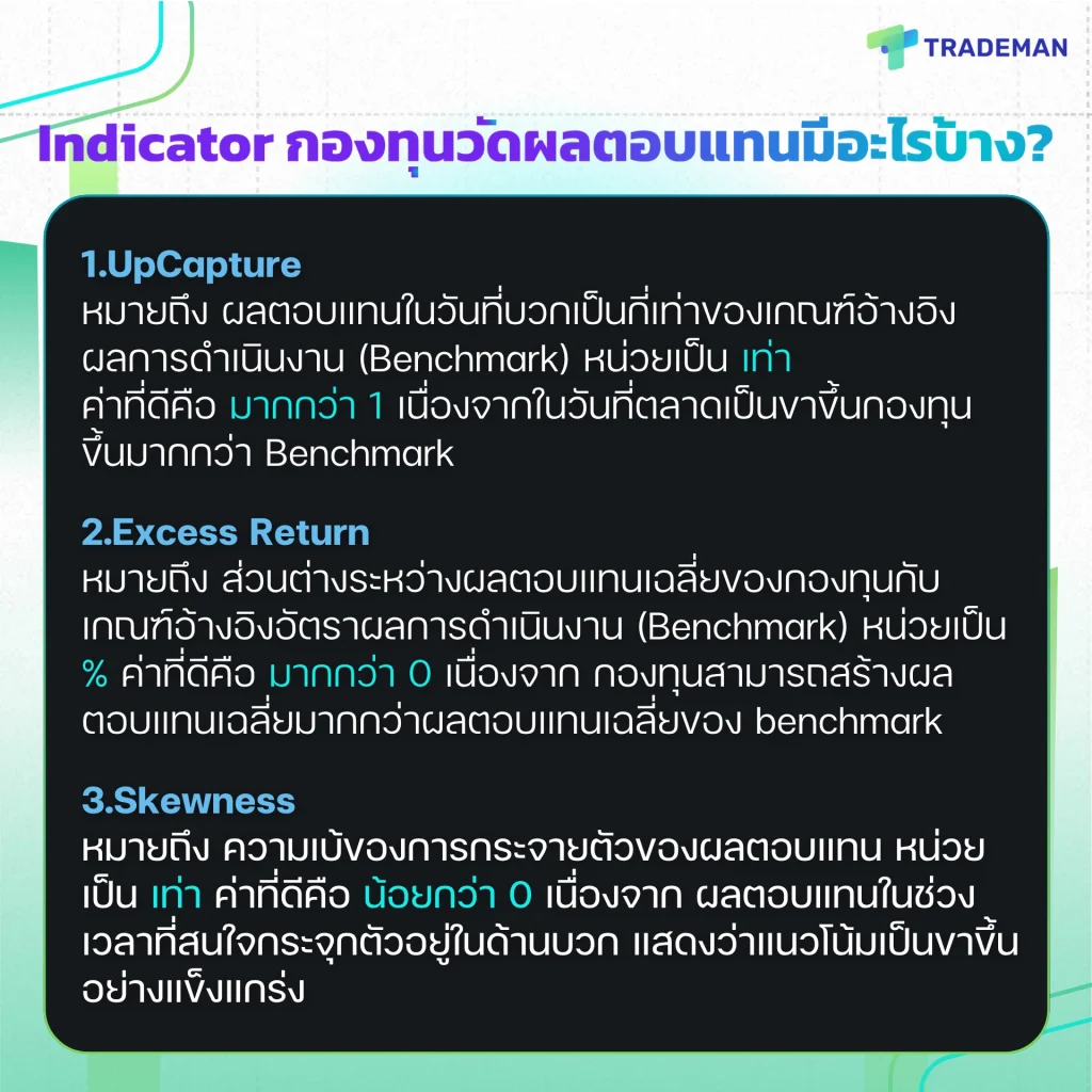 ค่าที่ดีคือ มากกว่า 1 เนื่องจากในวันที่ตลาดเป็นขาขึ้นกองทุนขึ้นมากกว่า Benchmark