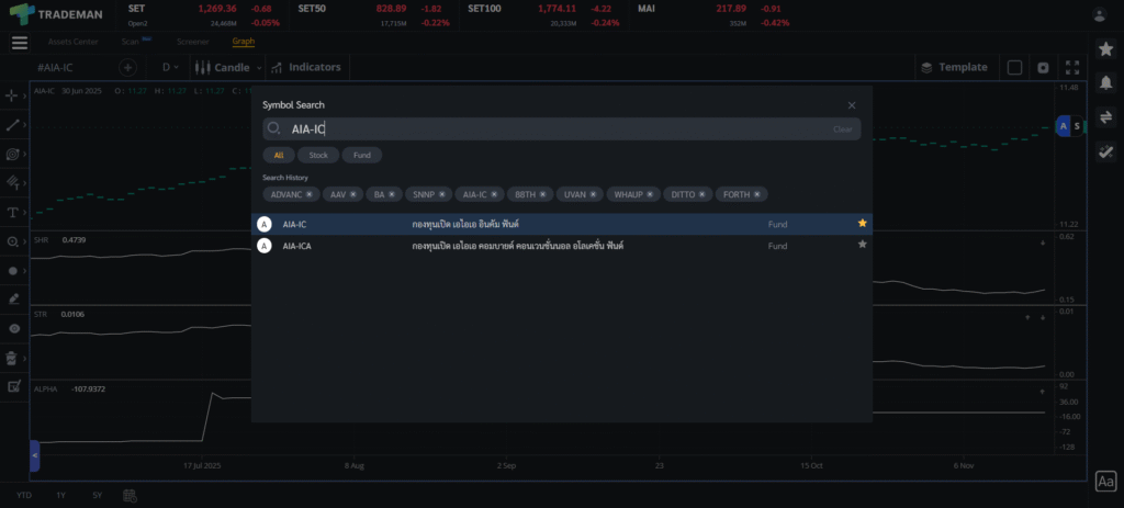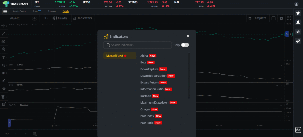 วิธีเพิ่ม Indicator บนกราฟกองทุน