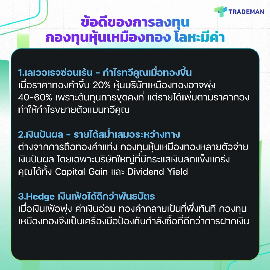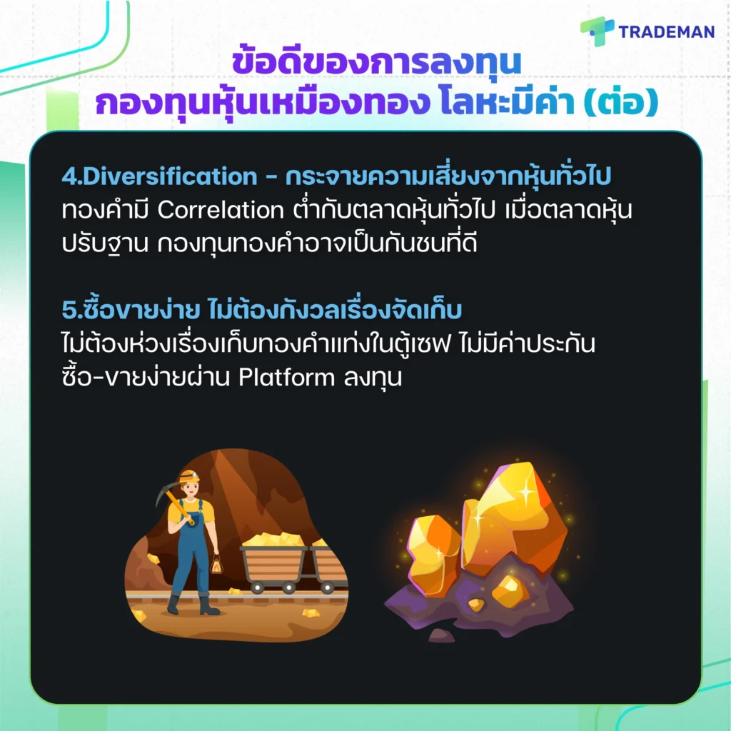 ข้อดีของการลงทุนกองทุนหุ้นเหมืองทอง โลหะมีค่า (ต่อ)