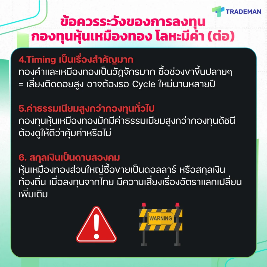 ข้อควรระวังของการลงทุนกองทุนหุ้นเหมืองทอง โลหะมีค่า (ต่อ)