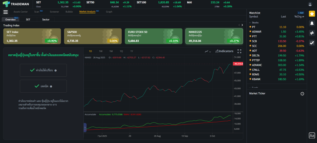 ฟีเจอร์สรุปภาพรวมตลาดหุ้นบน Trademan จะเป็นเครื่องมือที่ช่วยให้คุณอัพเดทข่าวสารและวางกลยุทธ์การลงทุนได้อย่างมั่นใจมากขึ้น