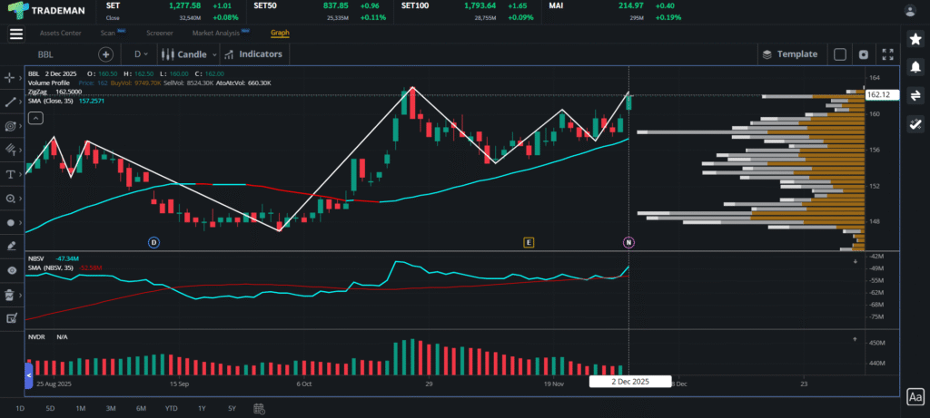 āđāļāļĢāļ·āđāļāļāļĄāļ·āļ Net Buy Sell Volume āđāļŠāļāļāđāļŦāđāđāļŦāđāļāļ§āđāļēāļāļēāļĢāļāļĢāļąāļāļāļąāļ§āļāļķāđāļāļāļāļāļĢāļēāļāļēāļŦāļļāđāļ BBL āļāļēāļāļāļ°āđāļāđāļāļāļēāļĢāļāļķāđāļāļāļĢāļīāļ āđāļāļĢāļēāļ° Indicator Net Buy Sell Volume āļĒāļ Low āļŠāļđāļāļāļķāđāļ