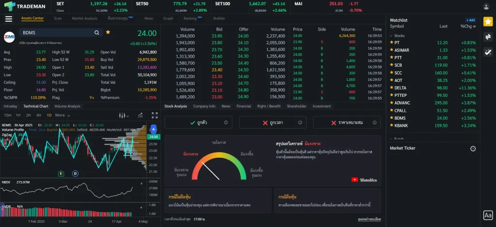 คลิกดูผลอย่างละเอียดของฟังก์ชัน Stock Analysis หุ้น BDMS ณ วันที่ 30 เม.ย. 2568 เวลา 17.49 น.