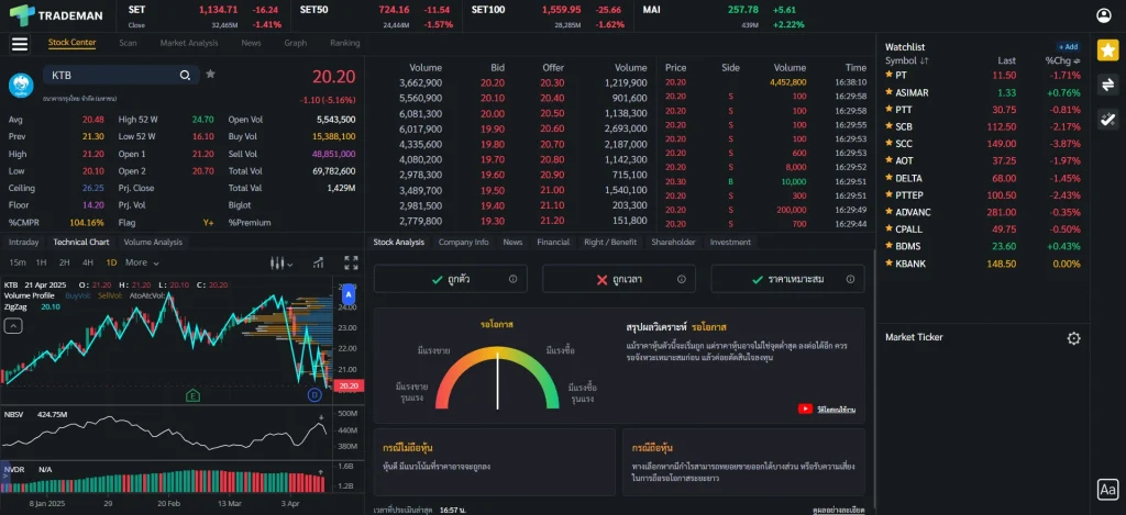 คลิกดูผลอย่างละเอียดของฟังก์ชัน Stock Analysis หุ้น KTB ณ วันที่ 21 เม.ย. 2568 เวลา 17.30 น.