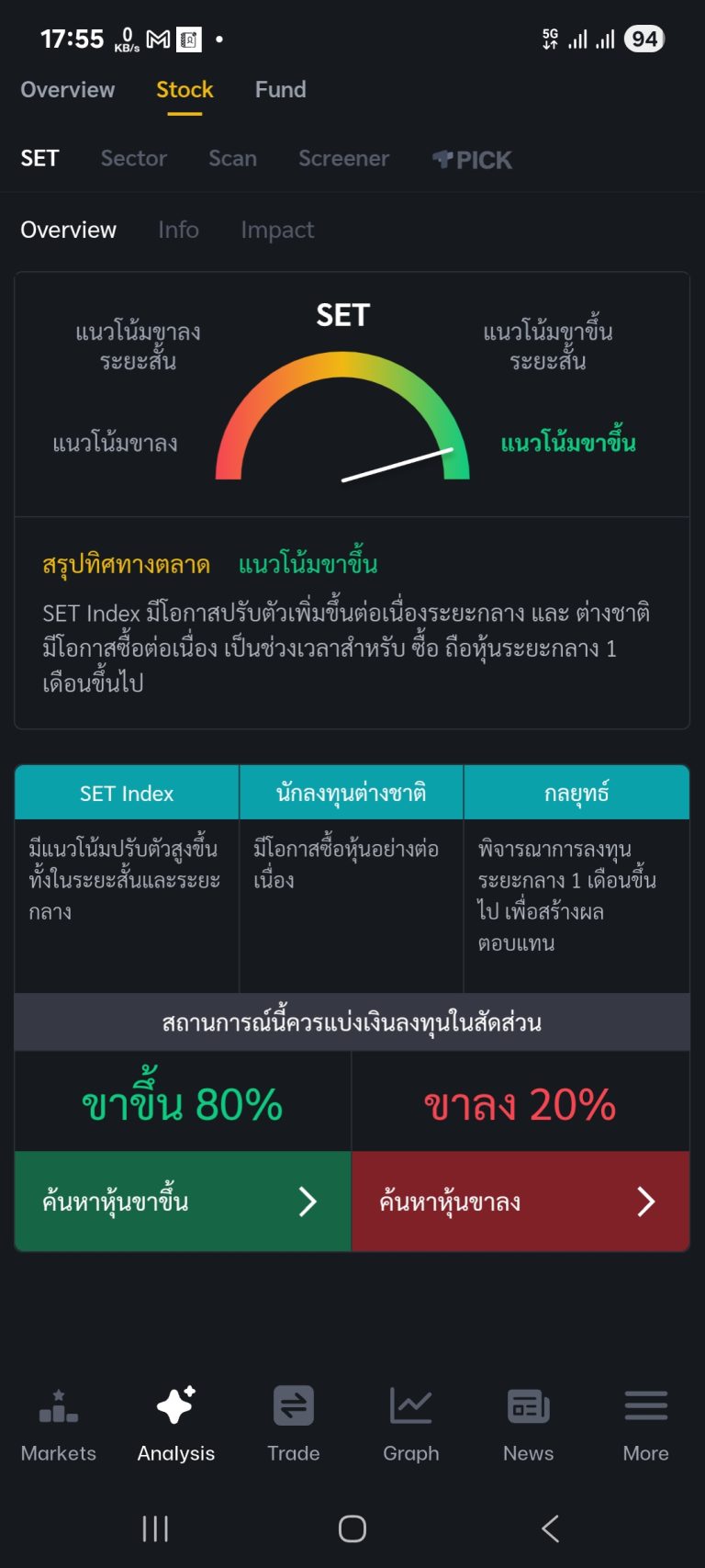 ตัวอย่างผลการวิเคราะห์จาก Market Analysis ของ SET ข้อมูล ณ วันที่ 15 ส.ค. 2568 เวลา 17.55 น.