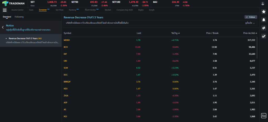 ⚠️ ข้อสังเกต การใช้ Screener บน Trademan ทำให้การค้นหาหุ้นที่สนใจง่ายขึ้น ประหยัดเวลาเพื่อเรื่องที่สำคัญกว่า