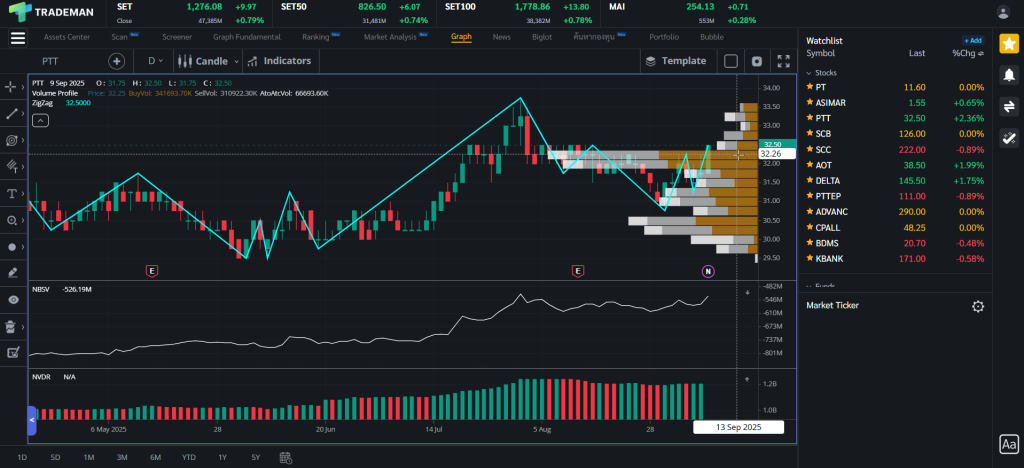 จากการวิเคราะห์ Volume Profile พบว่ามีแนวรับสำคัญที่ 32.25 บาท ซึ่งเป็นระดับราคาที่นักลงทุนควรจับตามองอย่างใกล้ชิด หากราคาไม่สามารถยืนเหนือแนวรับนี้ไปได้ อาจมีโอกาสปรับตัวลง