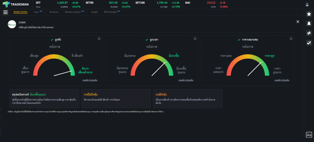 หุ้น UVAN แนวโน้มขาขึ้น ผลวิเคราะห์ มีแรงซื้อรุนแรง งบการเงินดี ราคาไม่แพง