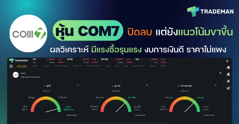 ⚠️ ข้อสังเกต การใช้หน้า Stock Center บน Trademan ทำให้การติดตามหุ้นและวิเคราะห์หุ้นจบในหน้าเดียว ไม่ว่าจะเป็นข้อมูลหุ้น กราฟเทคนิค ข้อมูลธุรกิจ ข่าว ถ้าใช้โปรแกรมอื่นก็ต้องเปิดฟังก์ชันเพิ่มเต็มไปหมด เสียเวลาในการวิเคราะห์มากขึ้นเป็นแน่ มาพร้อมกับฟังก์ชัน Stock Analysis ที่จะช่วยวิเคราะห์หุ้นและแนะนำจุดซื้อถือขาย ประหยัดเวลาเพื่อเรื่องที่สำคัญกว่า