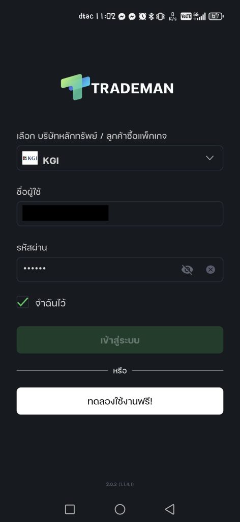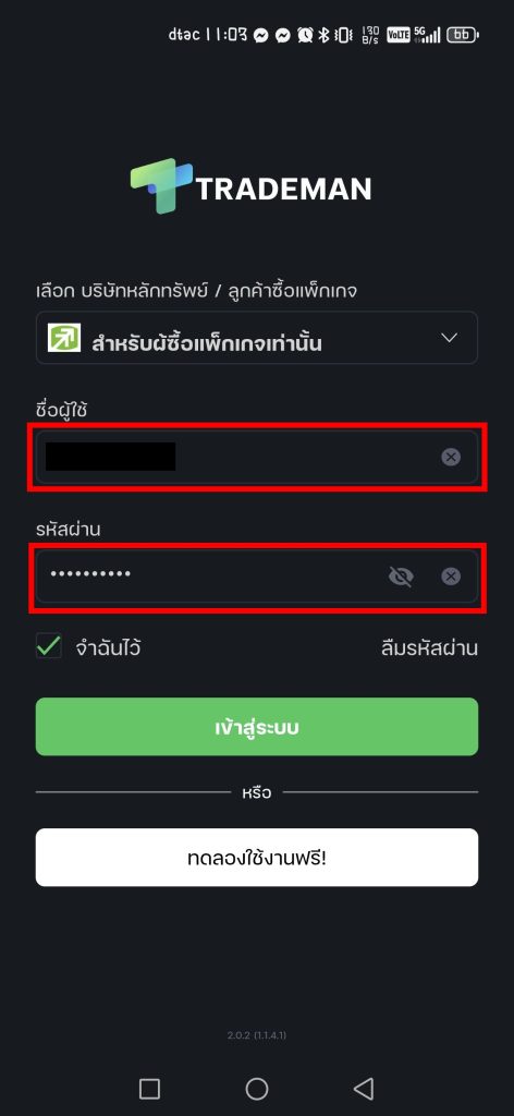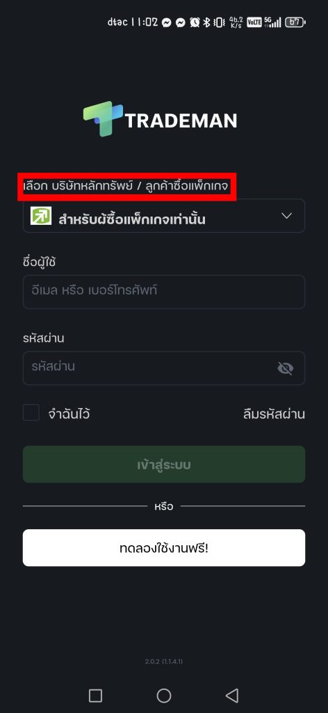 วิธีที่ 2 สำหรับลูกค้าที่ใช้งาน Trademan ผ่านโบรกเกอร์