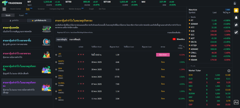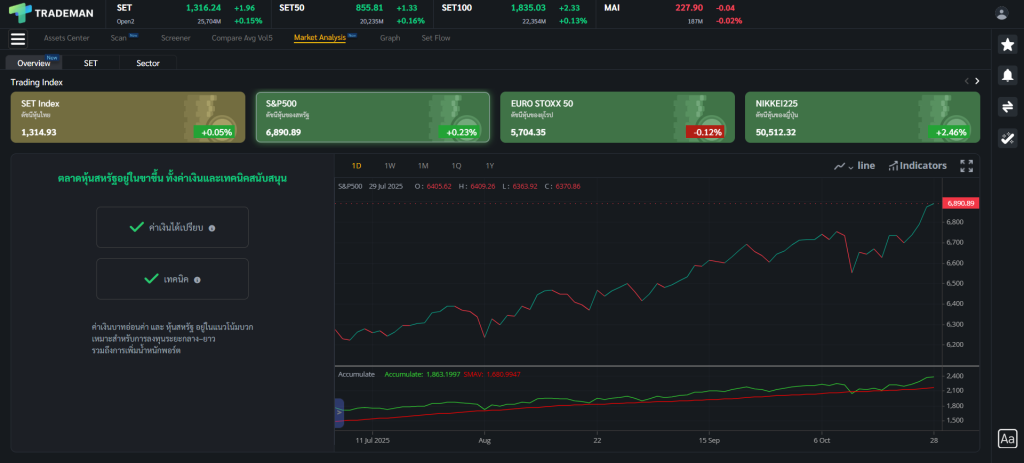 บางครั้ง Sector Rotation เกิดจาก “ธีม” หรือกระแสใหม่ๆ เช่น นโยบายรัฐ, ราคาสินค้าโภคภัณฑ์เปลี่ยน, หรือเทรนด์โลก AI ของ Trademan จะช่วยสรุปมาให้ว่า สินทรัพย์” ไหนกำลังมาแรง มีแนวโน้มอย่างไรบ้าง
