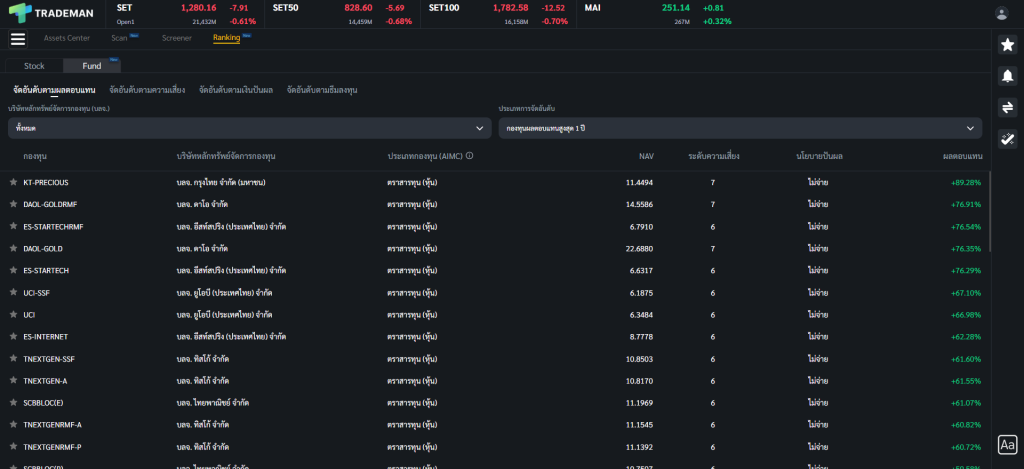 ตัวอย่าง Fund Ranking บน Trademan ณ วันที่ 30 ก.ย. 2568