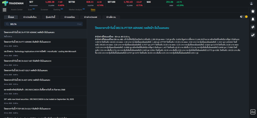 นอกจากเครื่องมือและข้อมูลเชิงปริมาณแล้ว TRADEMAN ยังรวบรวมบทวิเคราะห์จากผู้เชี่ยวชาญและข่าวสารที่สำคัญในแวดวงการลงทุน เพื่อให้นักลงทุนไม่พลาดทุกความเคลื่อนไหวและสามารถนำข้อมูลเชิงคุณภาพมาประกอบการตัดสินใจลงทุนได้ดียิ่งขึ้น