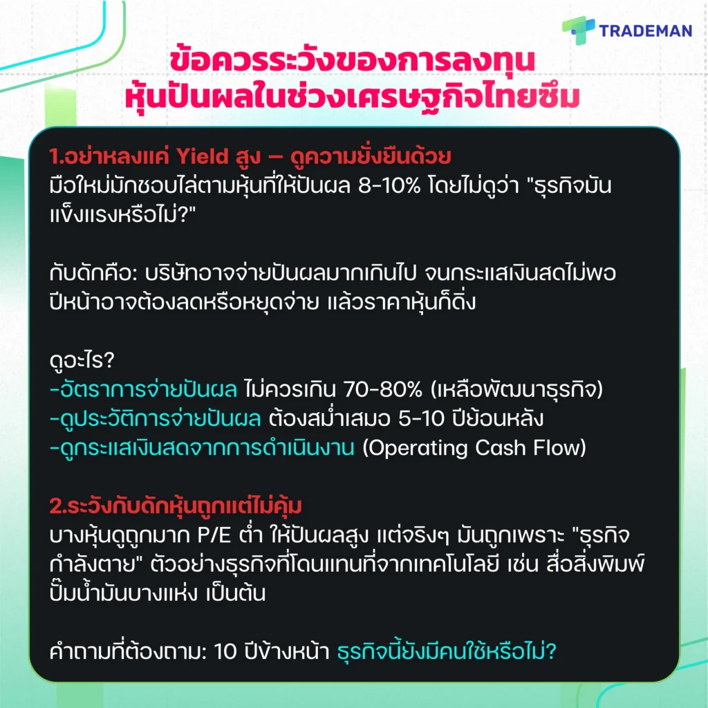 ข้อควรระวังของการลงทุนหุ้นปันผลในช่วงเศรษฐกิจไทยซึม