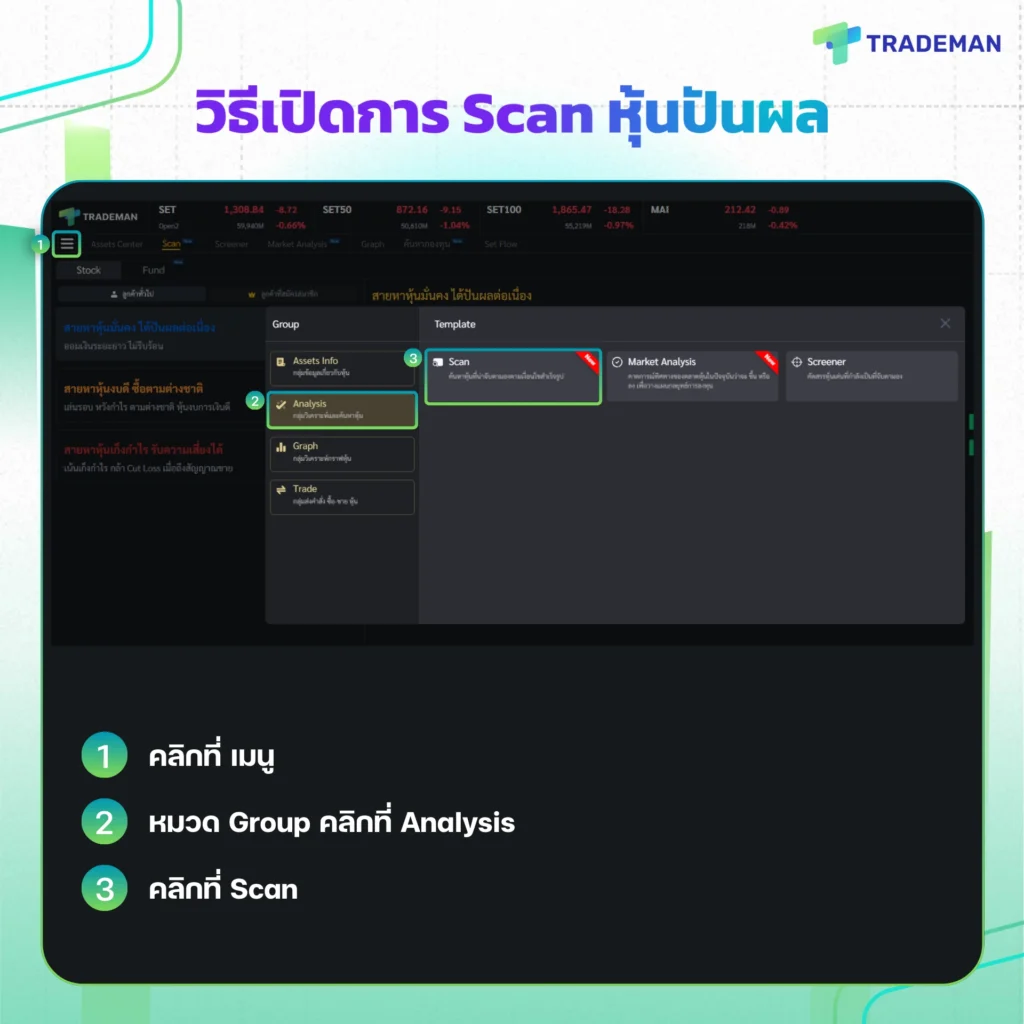 วิธีเปิดการ Scan หุ้นปันผล